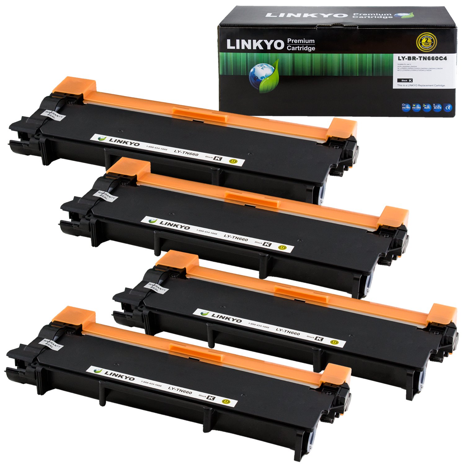 LINKYO Compatible Toner Cartridge Replacement for Brother TN660 TN-660 TN630 (Black, High Yield, 4-Pack)