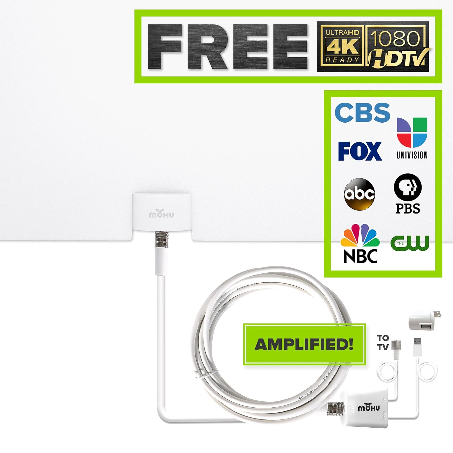 Mohu Leaf Glide HDTV Antenna, Indoor, Amplified, 65 Mile Range, Paper-thin, Reversible, Paintable, 4K-Ready, 16 Foot Detachable Cable, Premium Materials for Performance, USA Made
