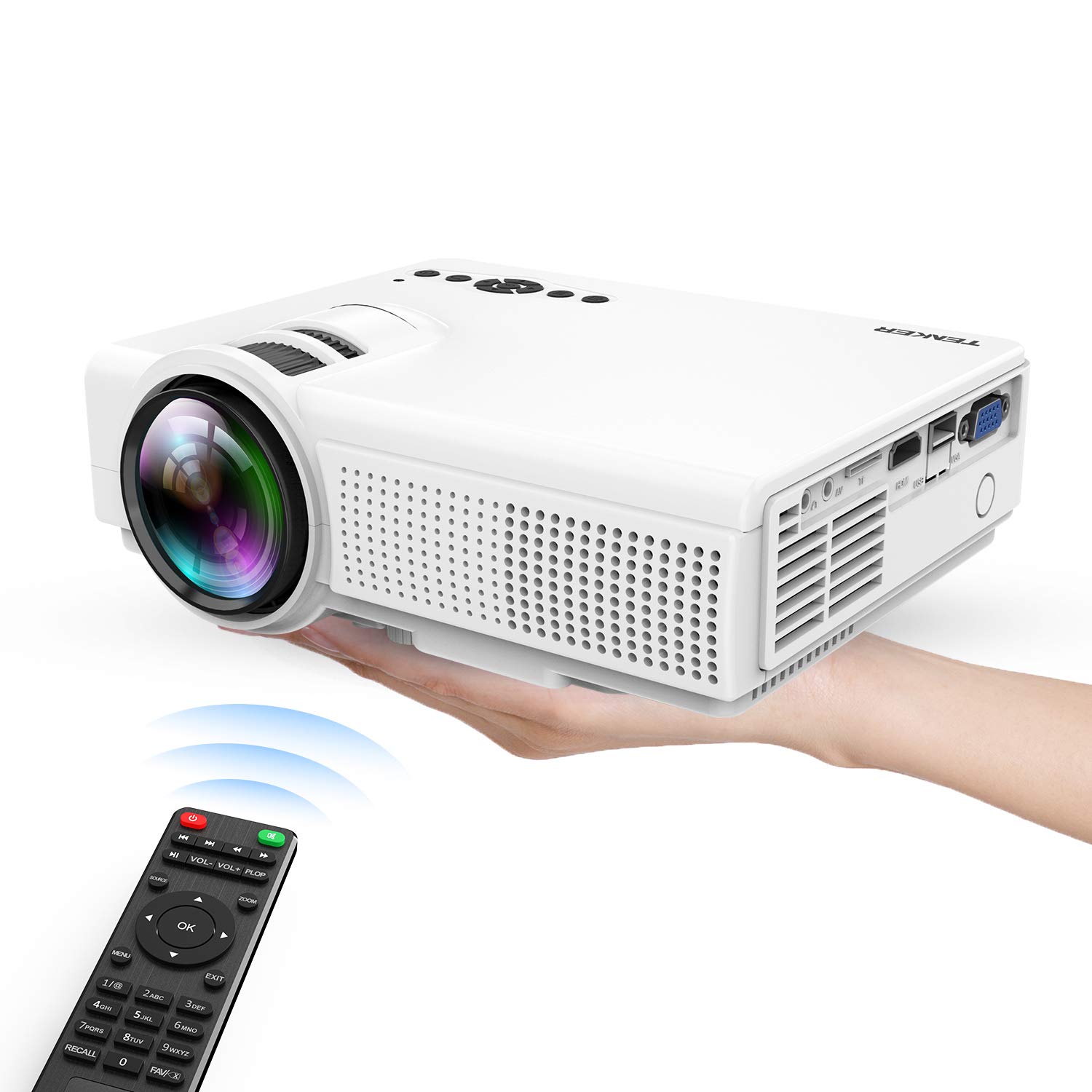 Projector, TENKER Q5 LED Mini Movie Projector Support 1080P HDMI USB TF VGA AV, Multimedia Home Theater LCD Video Projector