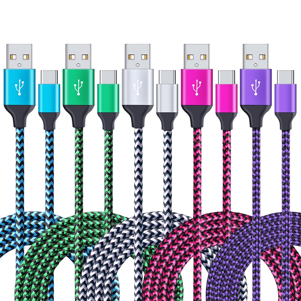 Samsung Galaxy Note 8 Fast Charger Cable, CIQILY 5-Pack 6FT Long Braided Quick Charging Cord, USB Type C Charger Cable for Samsung Galaxy S8/S8+, LG G5/G6/V20/V30, Nexus 5x/6p, Nintendo Switch &More